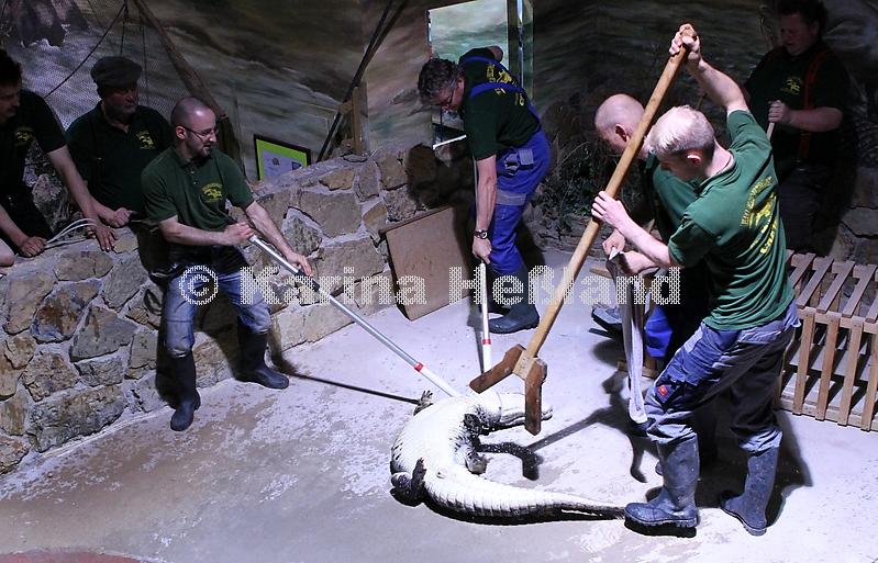 Krokodilumsetzung im Meeresaquarium Zella-Mehlis |